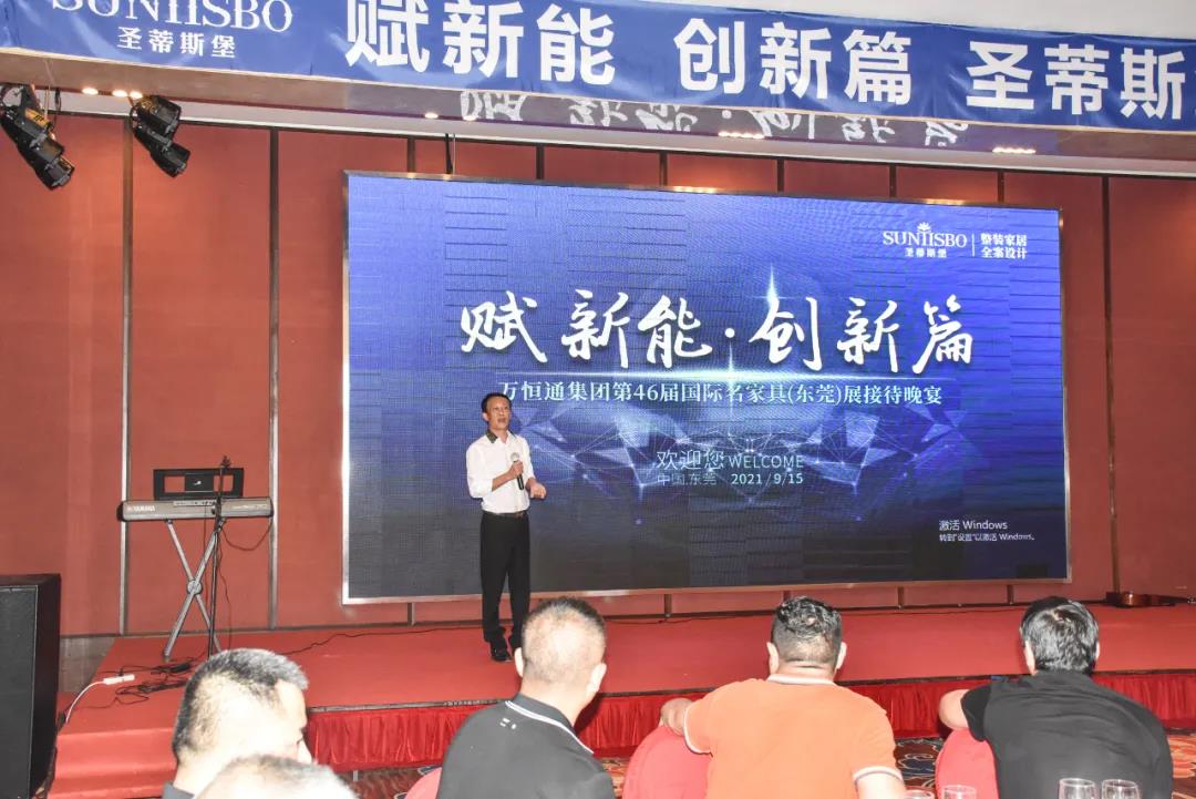 9月15日晚6时许,以“创新能,赋新篇”为主题的333体育集团集团第46届国际家具展接待晚宴在虎门丰泰花园酒店举行。